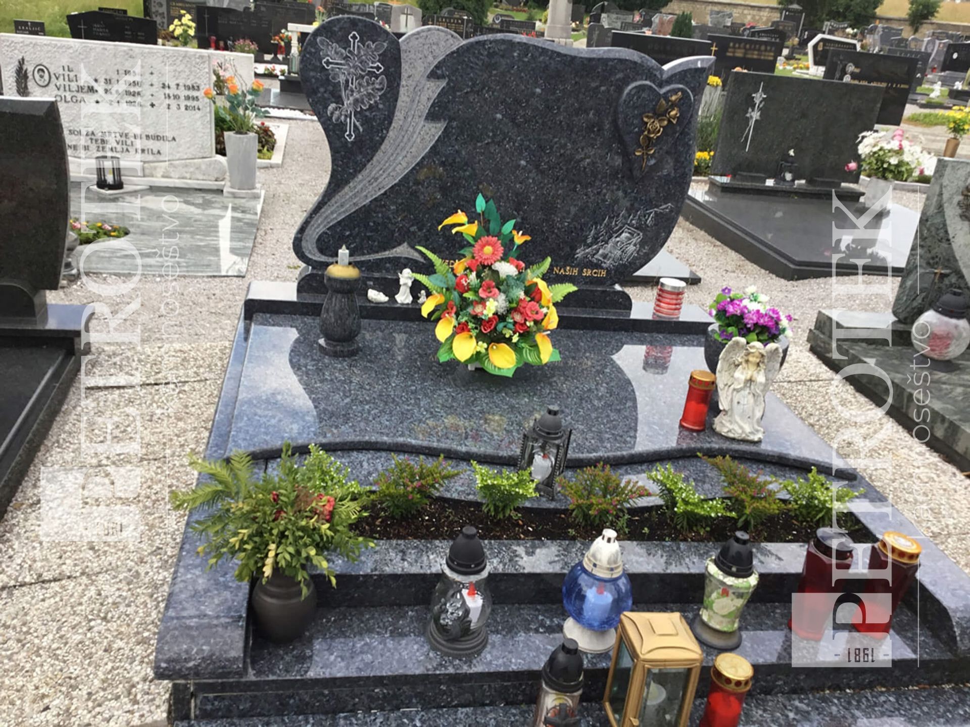 Naj spomenik odraža osebnost in življenjsko zgodbo vašega ljubljenega. Naši kamnoseki s posebno pozornostjo oblikujejo detajle na spomeniku.